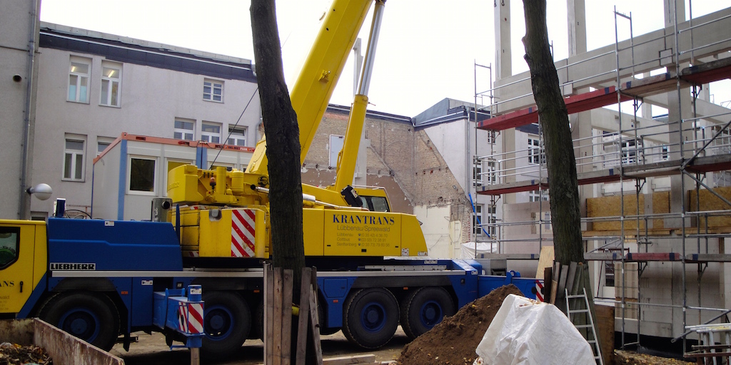 Vom 17.-19. November, 24.-27. November und am 8. Dezember sind Kranarbeiten für das Legen der Dachplatten der Aula notwendig. In der Zeit kann es zu Verkehrseinschränkungen in der Schulstraße kommen. Eltern nutzen bitten die Beethovenstraße.